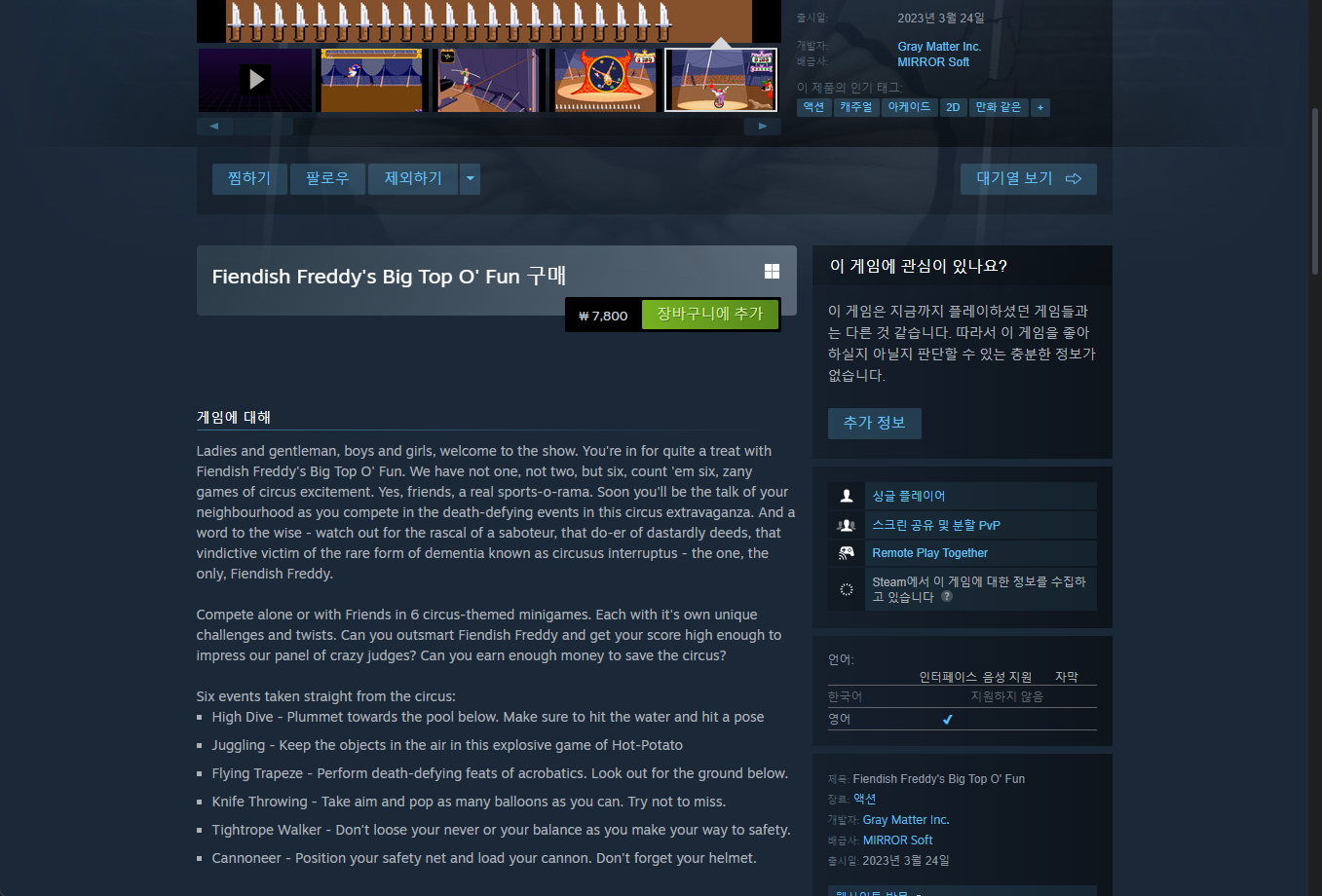 - "Fiendish Freddy's Big Top o' Fun" - Steam 스팀 페이지