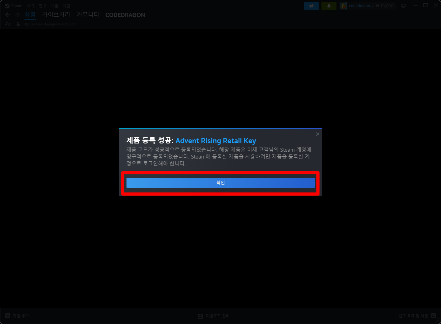 - "Advent Rising" 스팀 게임 등록 확인 메일