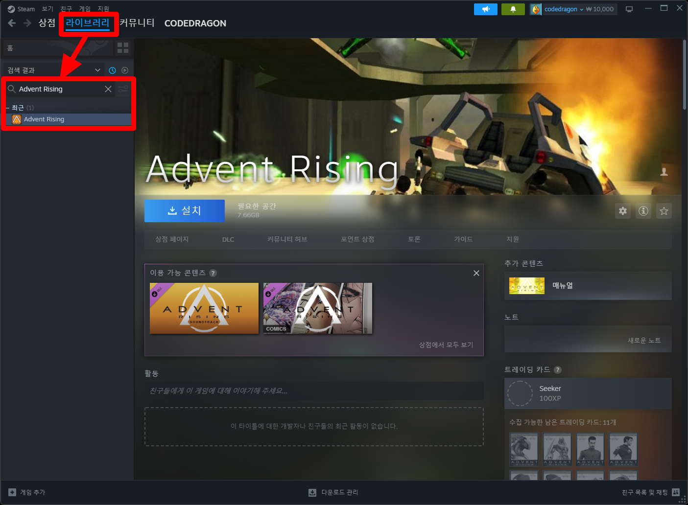 "Advent Rising" 나의 게임 라이브러리 확인