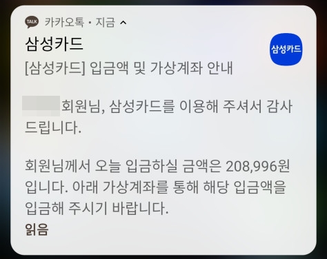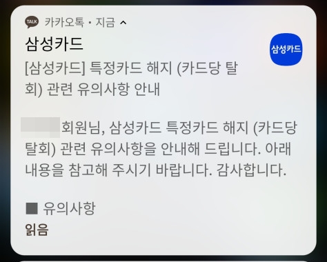 - 삼성카드 해지안내 카카오톡 메시지