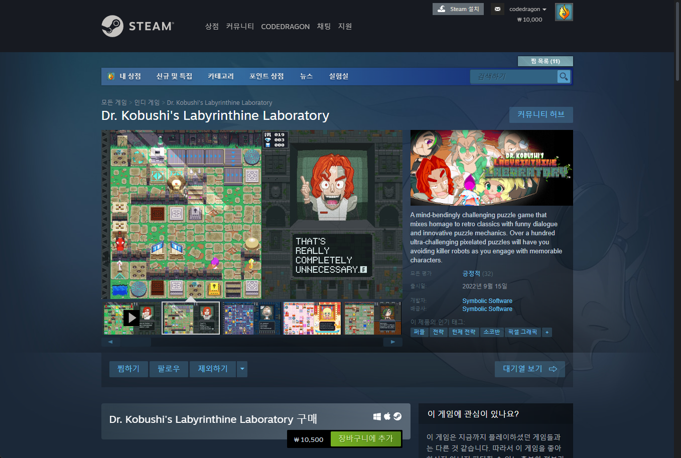 "Dr. Kobushi's Labyrinthine Laboratory" 스팀 Steam 페이지
