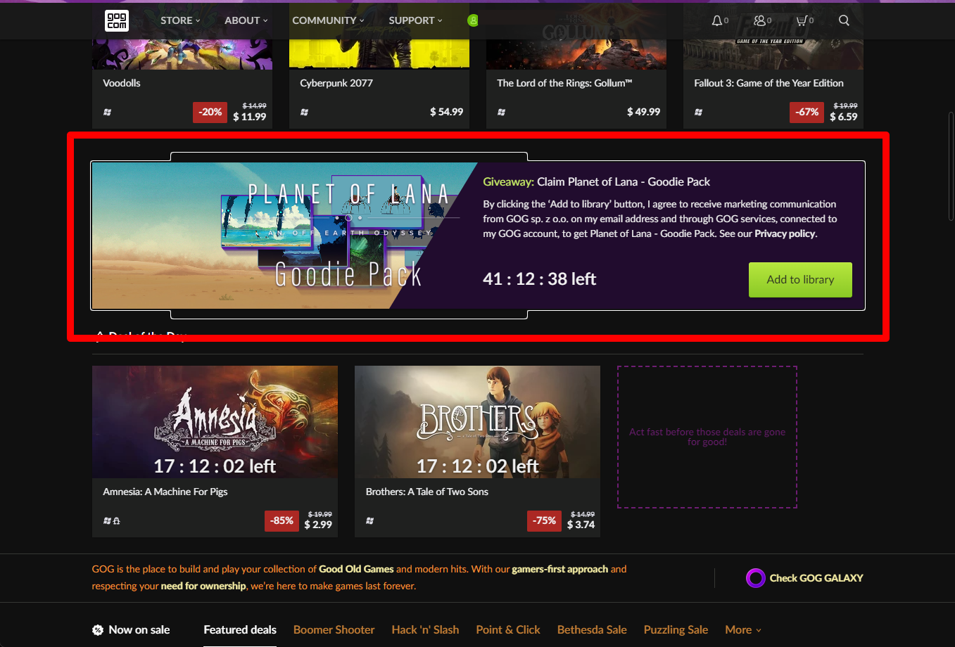 - "Planet of Lana - Goodie Pack" gog 무료게임 페이지
