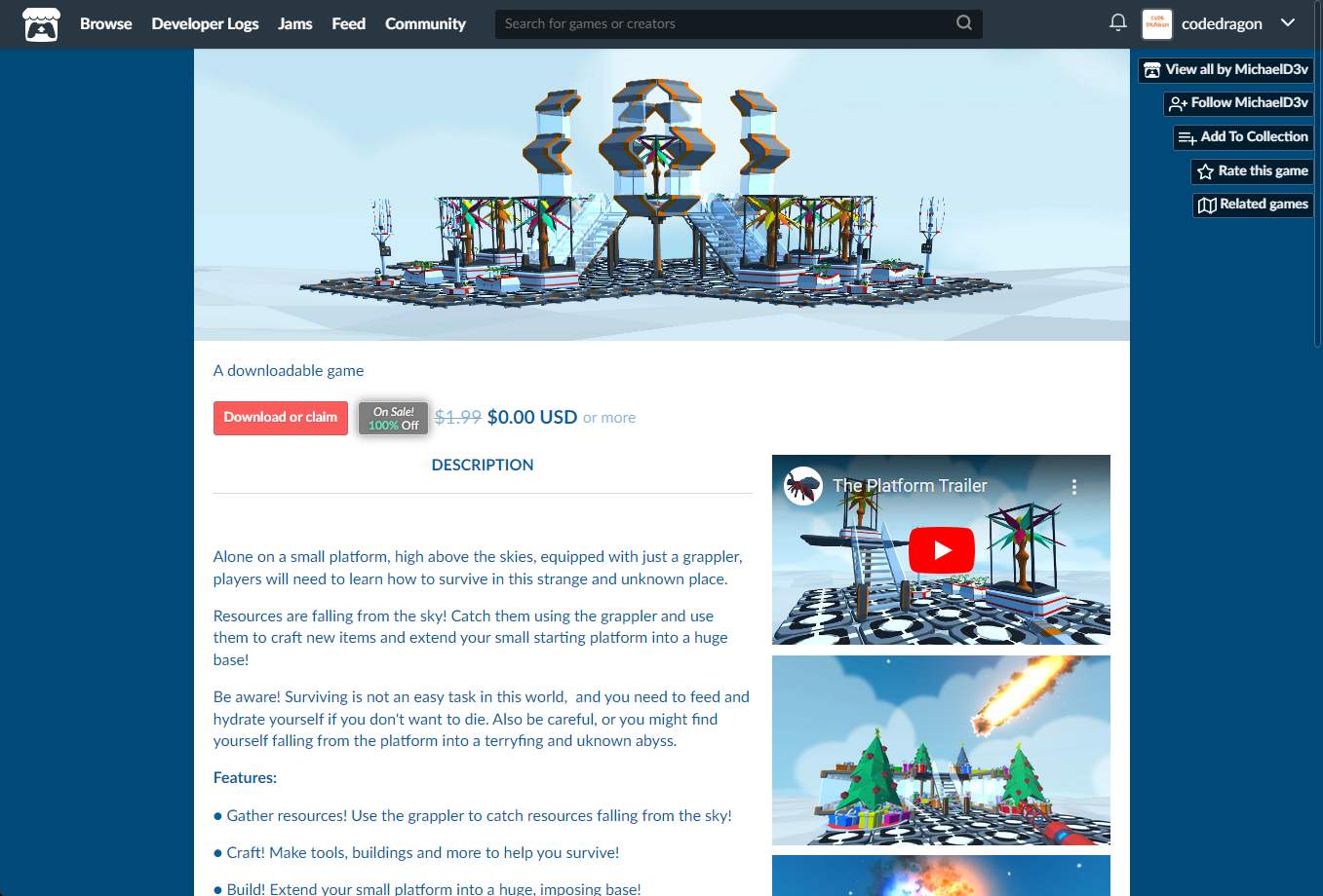 해당 페이지에 있는 [Download] 버튼을 클릭하면 "The Platform" 게임의 설치파일을 다운받을 수 있습니다.