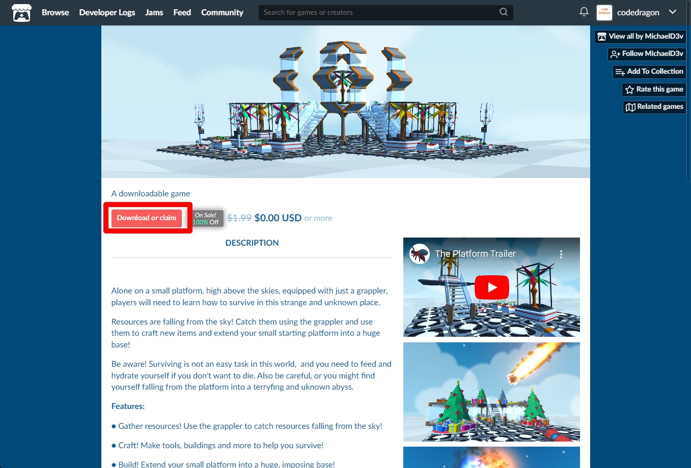 "The Platform" 페이지를 조금 내려 [Download or claim]을 클릭합니다.