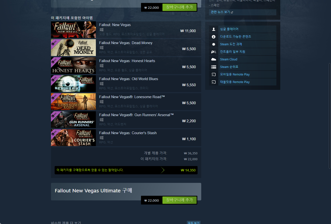 - "Fallout: New Vegas - Ultimate Edition" - Steam 스팀 게임 페이지