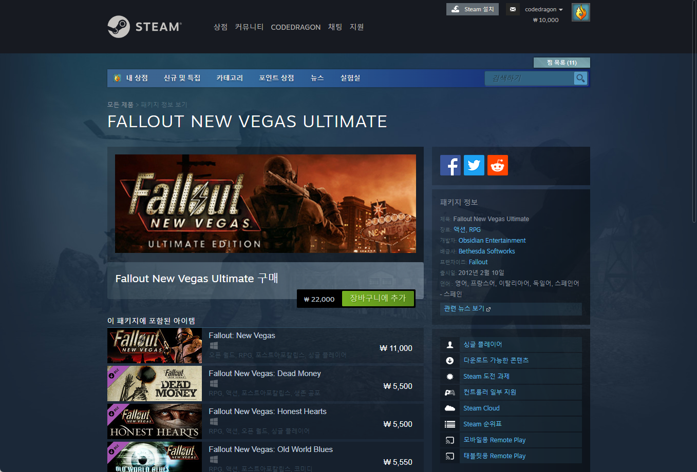 "Fallout: New Vegas - Ultimate Edition" - Steam 스팀 게임 페이지