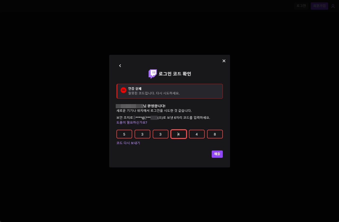 - 인증 실패 - 잘못된 코드입니다. 다시 시도하세요.