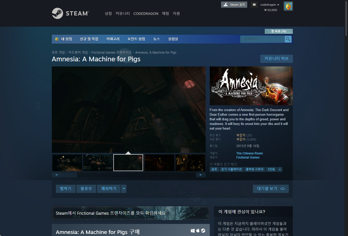 - "Amnesia: A Machine For Pigs" - Steam 스팀 페이지