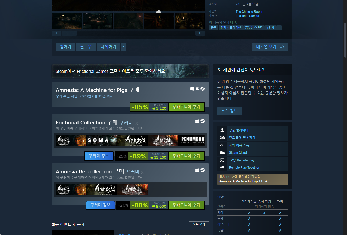 - "Amnesia: A Machine For Pigs" 게임 라이브러리 확인