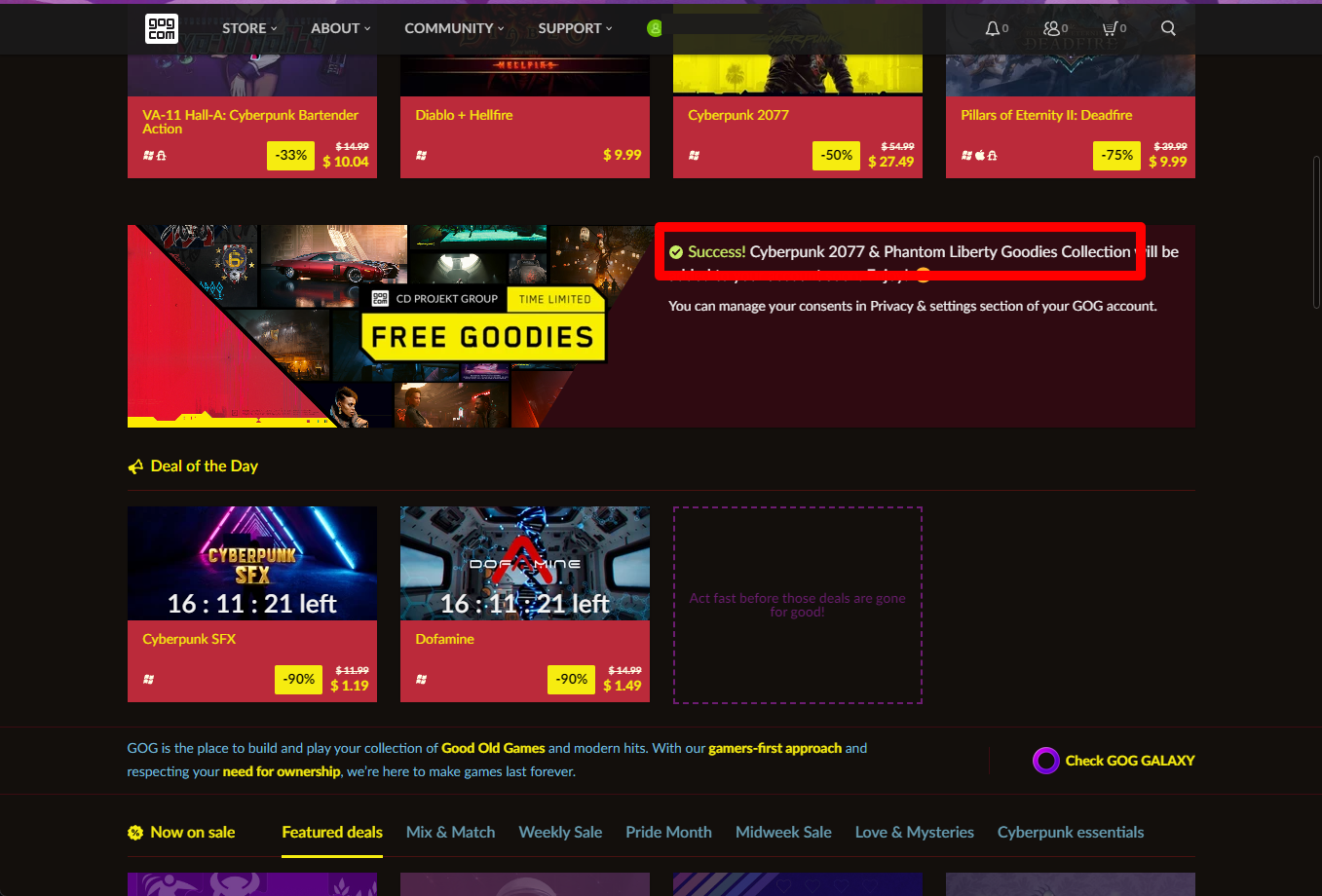 - "Cyberpunk 2077 & Phantom Liberty Goodies Collection" gog 무료게임 페이지