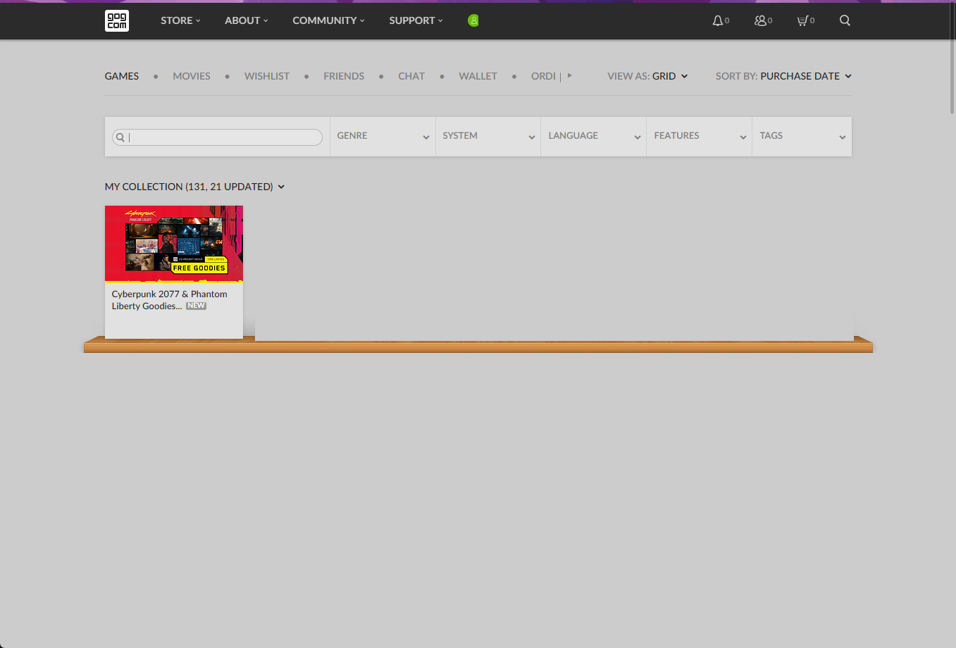 나의 게임 라이브러리를 확인하면 가장 위쪽에 방금받은 "Cyberpunk 2077 & Phantom Liberty Goodies Collection" 게임 항목을 확인할 수 있습니다.