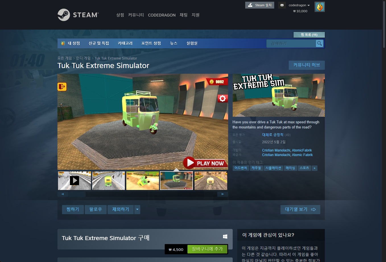 "Tuk Tuk Extreme Simulator" 게임 보유 확인