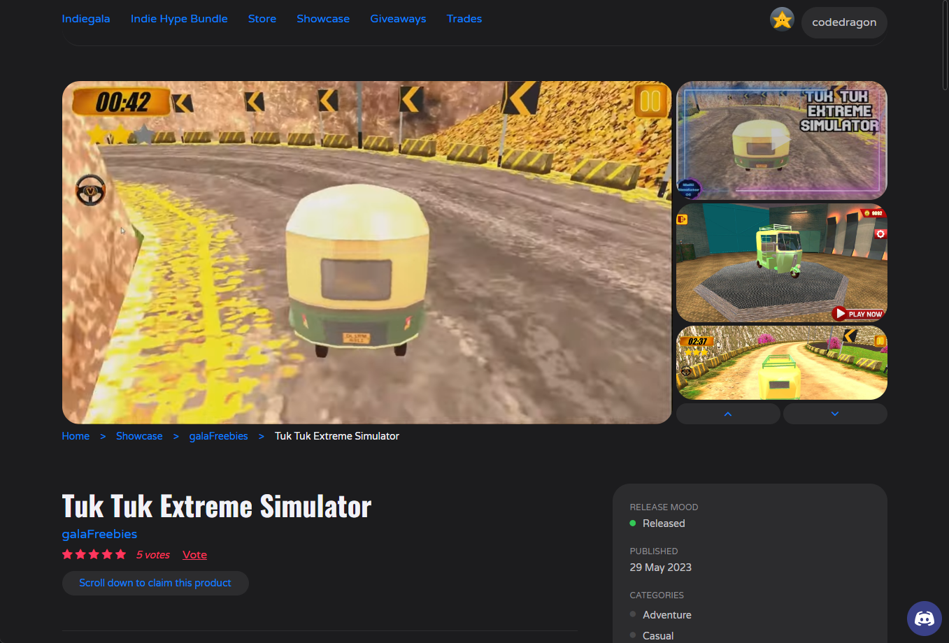 ₩4,500 -> ₩ 0(Free) Tuk Tuk Extreme Simulator 툭 툭 익스트림 시뮬레이터 무료 - 인디갈라 indiegala 무료 소장 기회 기간한정 indiegala FREE GAME, Limited time