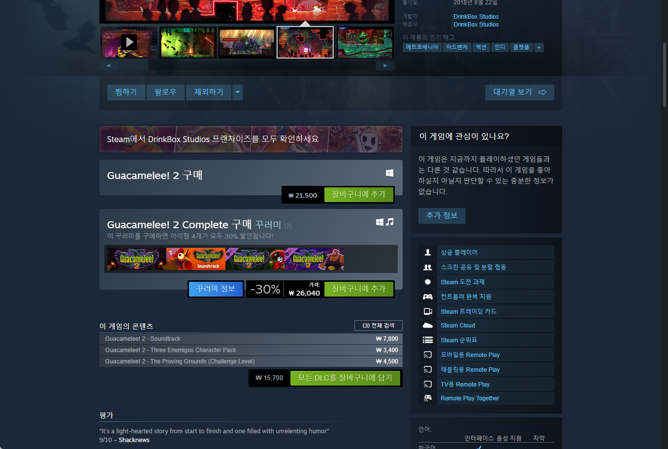 "Guacamelee! 2" - Steam 스팀 게임 페이지