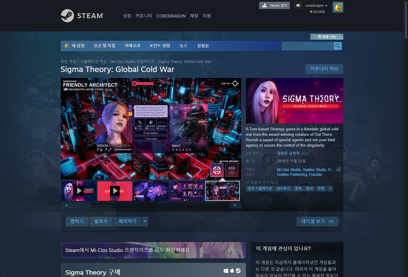 - "Sigma Theory: Global Cold War" - Steam 스팀 페이지