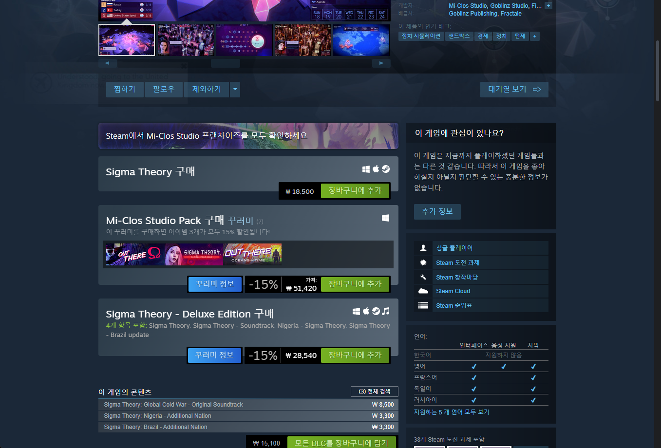 - "Sigma Theory: Global Cold War" - Steam 스팀 페이지