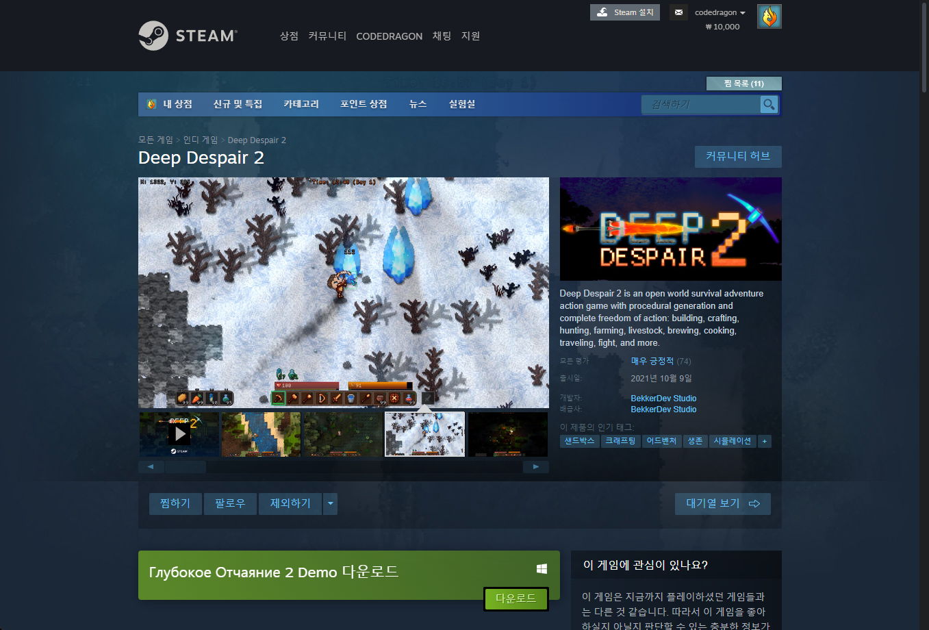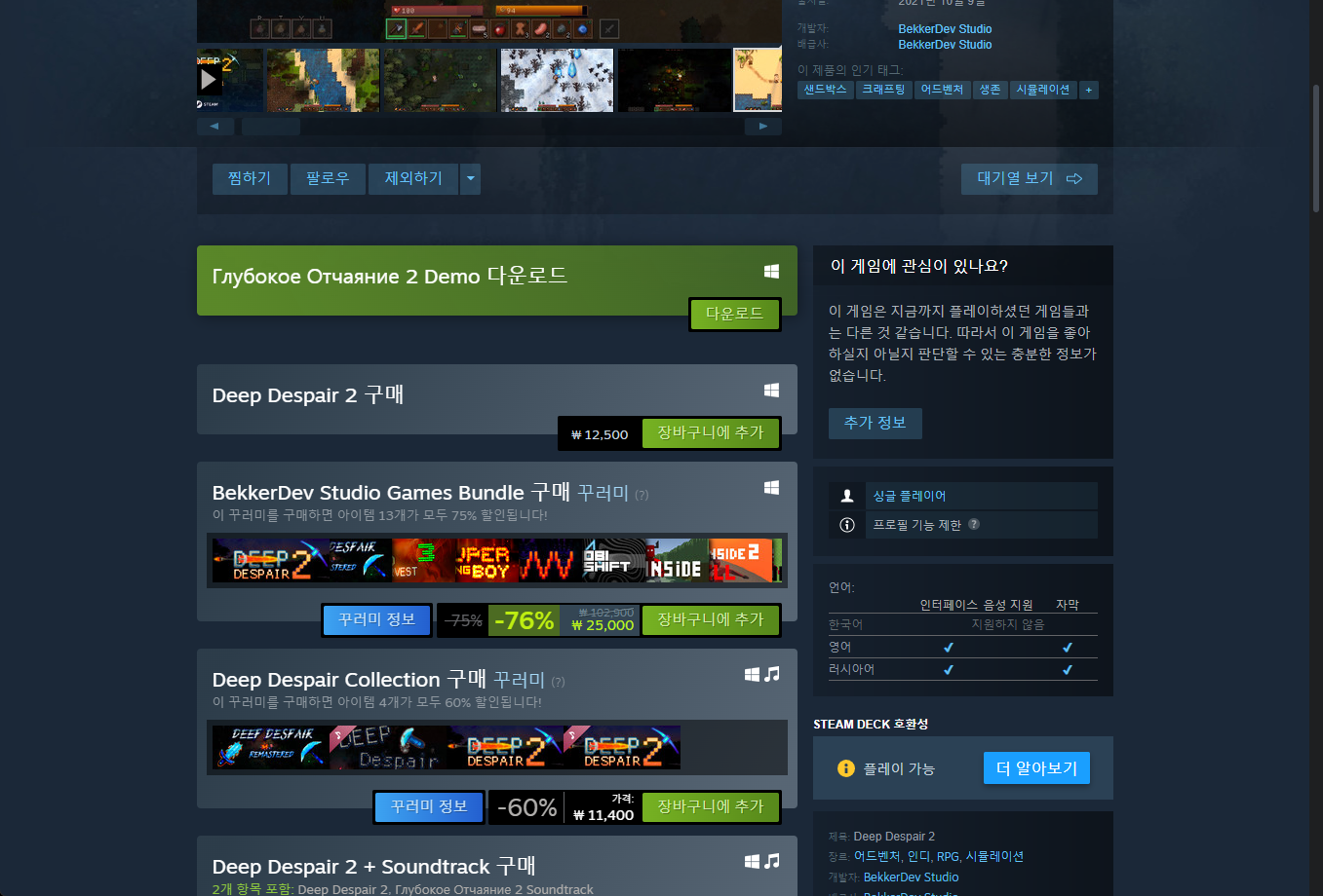 "Deep Despair 2" 게임 스팀 페이지입니다.