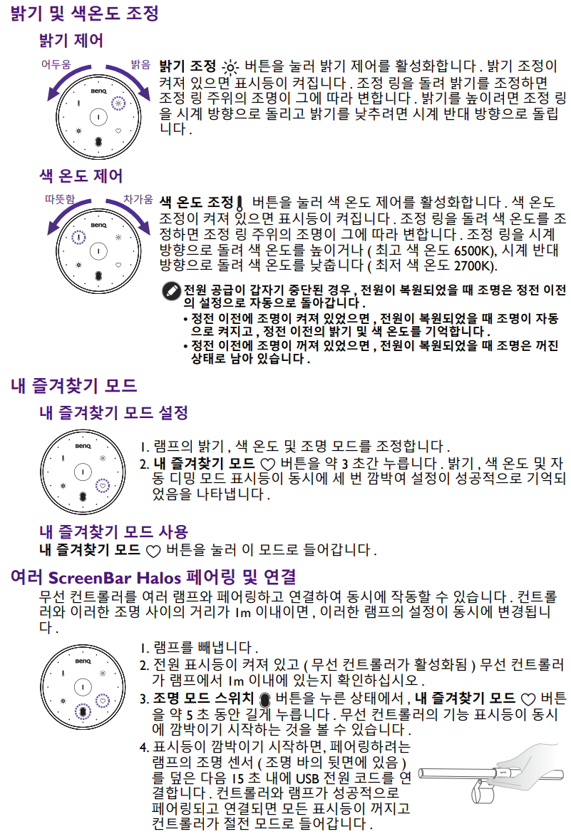 벤큐 스크린바 헤일로 컨트롤러 조작 방법