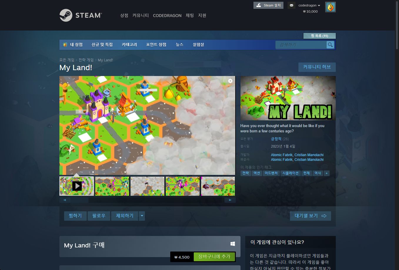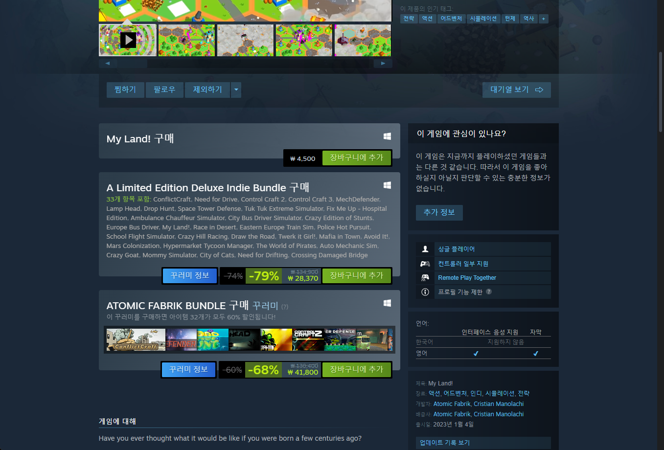 ₩4,500 -> ₩ 0(Free) My Land! 마이 랜드! 무료 - 인디갈라 indiegala 무료 소장 기회 기간한정 indiegala FREE GAME, Limited time