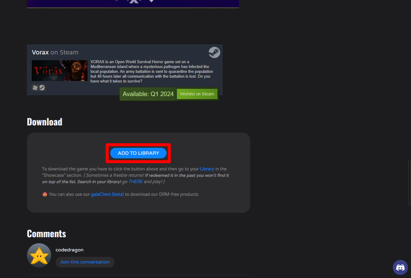 "Shinobi Shift" 게임 페이지를 내려 [ADD TO LIBRARY]를 클릭합니다.