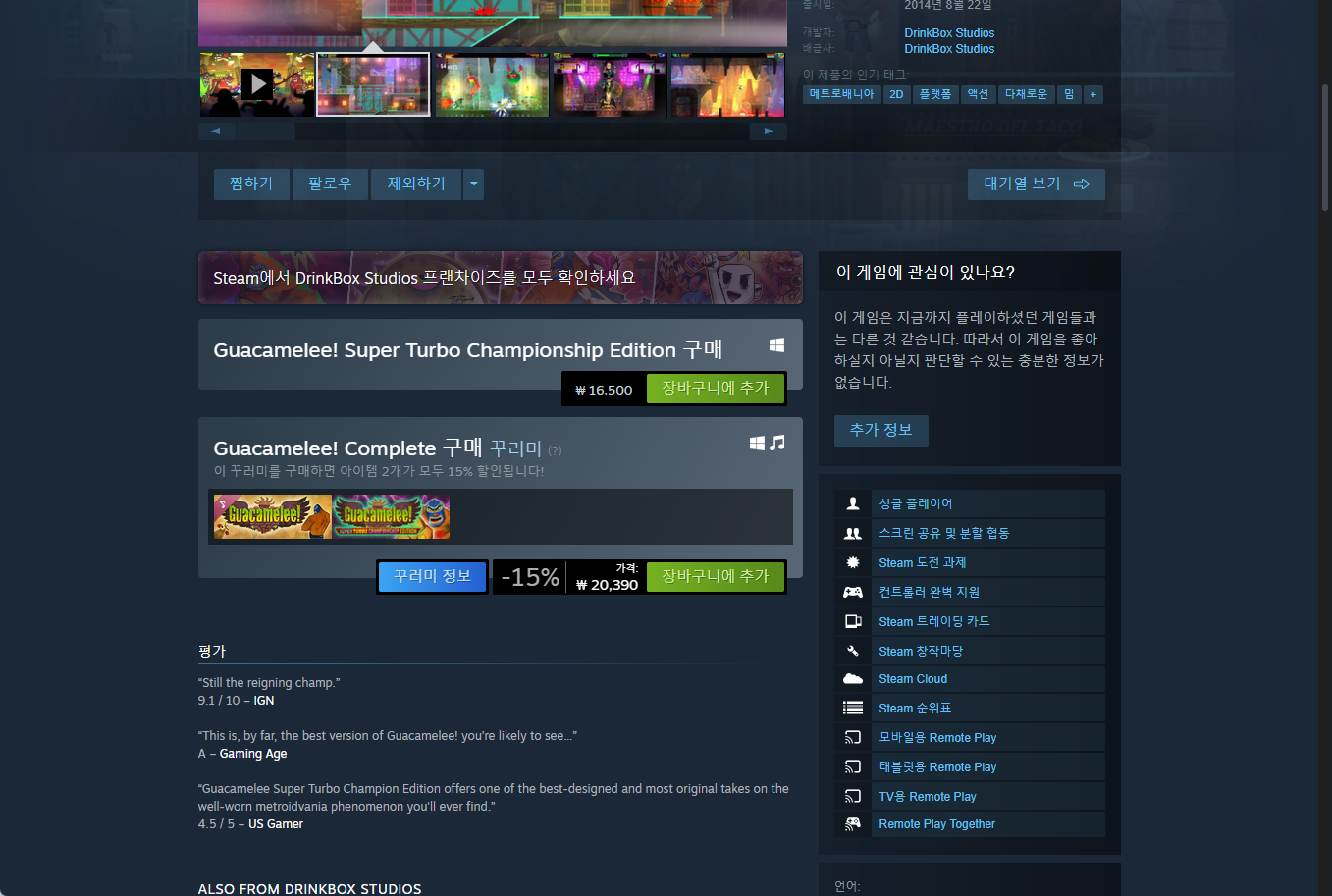 "Guacamelee! Super Turbo Championship Edition" - Steam 스팀 게임 페이지