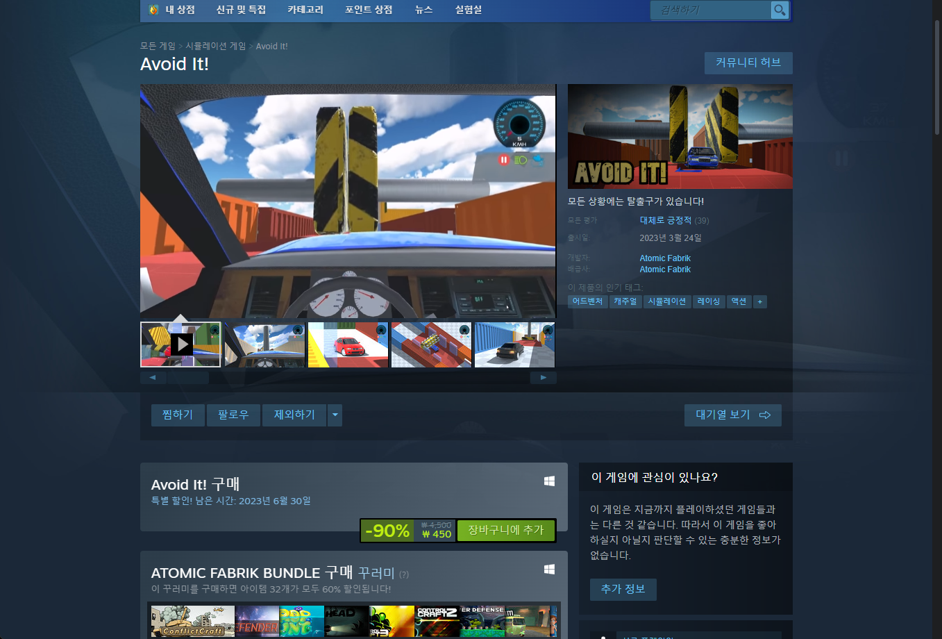 ₩4,500 -> ₩ 0(Free) Avoid It! 어보이드 잇! 무료 - 인디갈라 indiegala 무료 소장 기회 기간한정 indiegala FREE GAME, Limited time