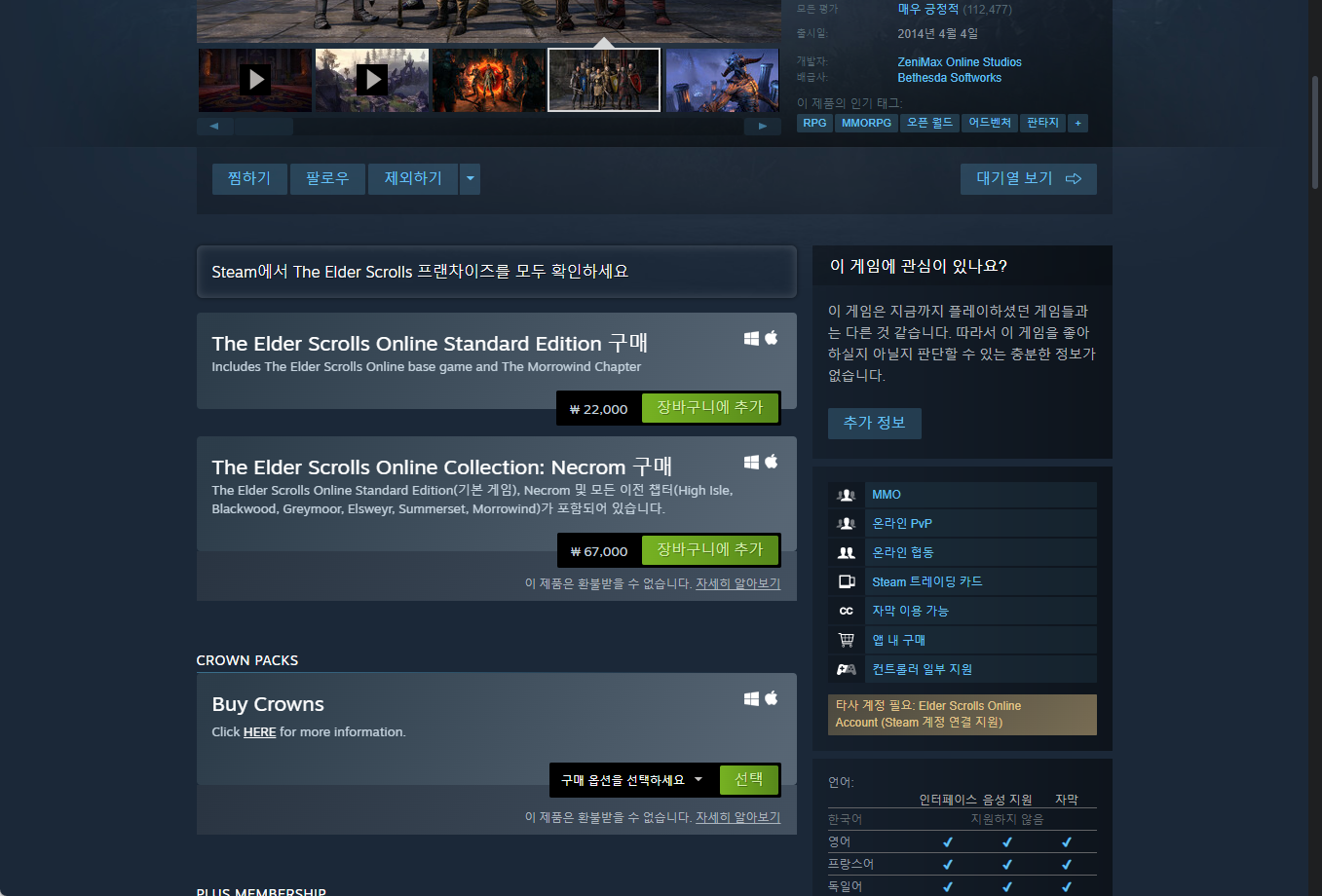 "The Elder Scrolls Online" - Steam 스팀 게임 페이지