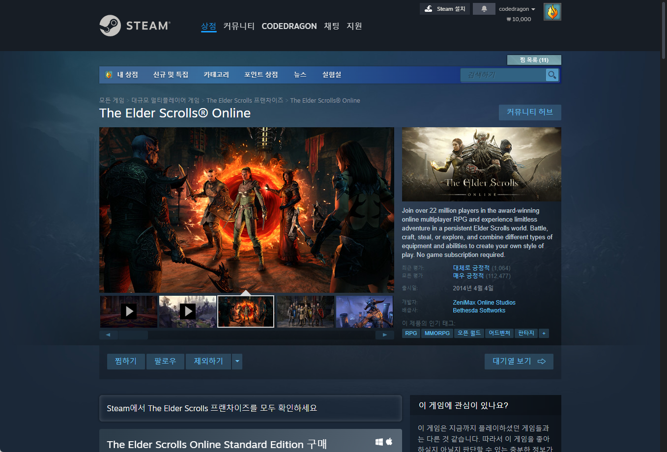 - "The Elder Scrolls Online" - Steam 스팀 게임 페이지