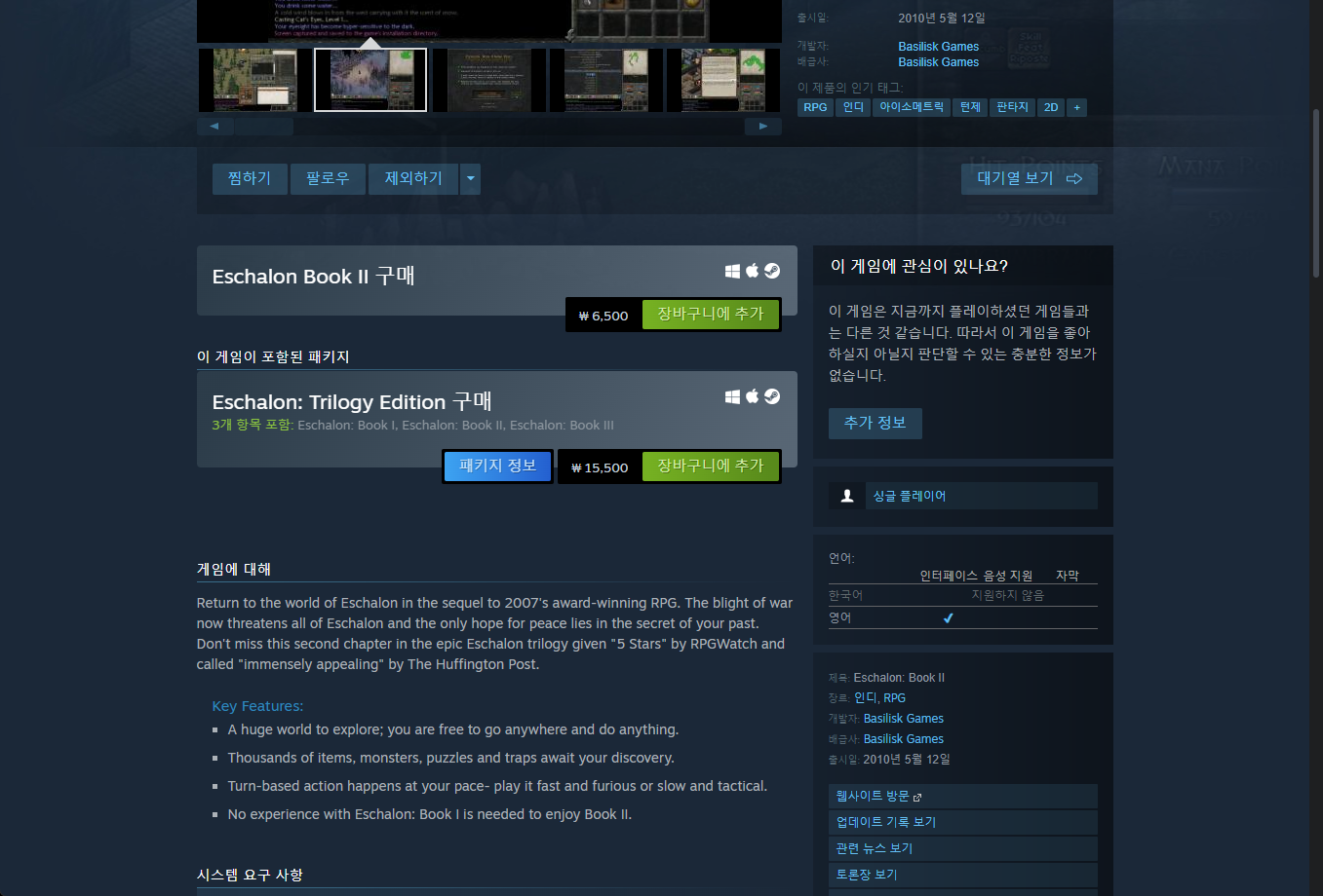 - "Eschalon: Book II" - Steam 스팀 페이지