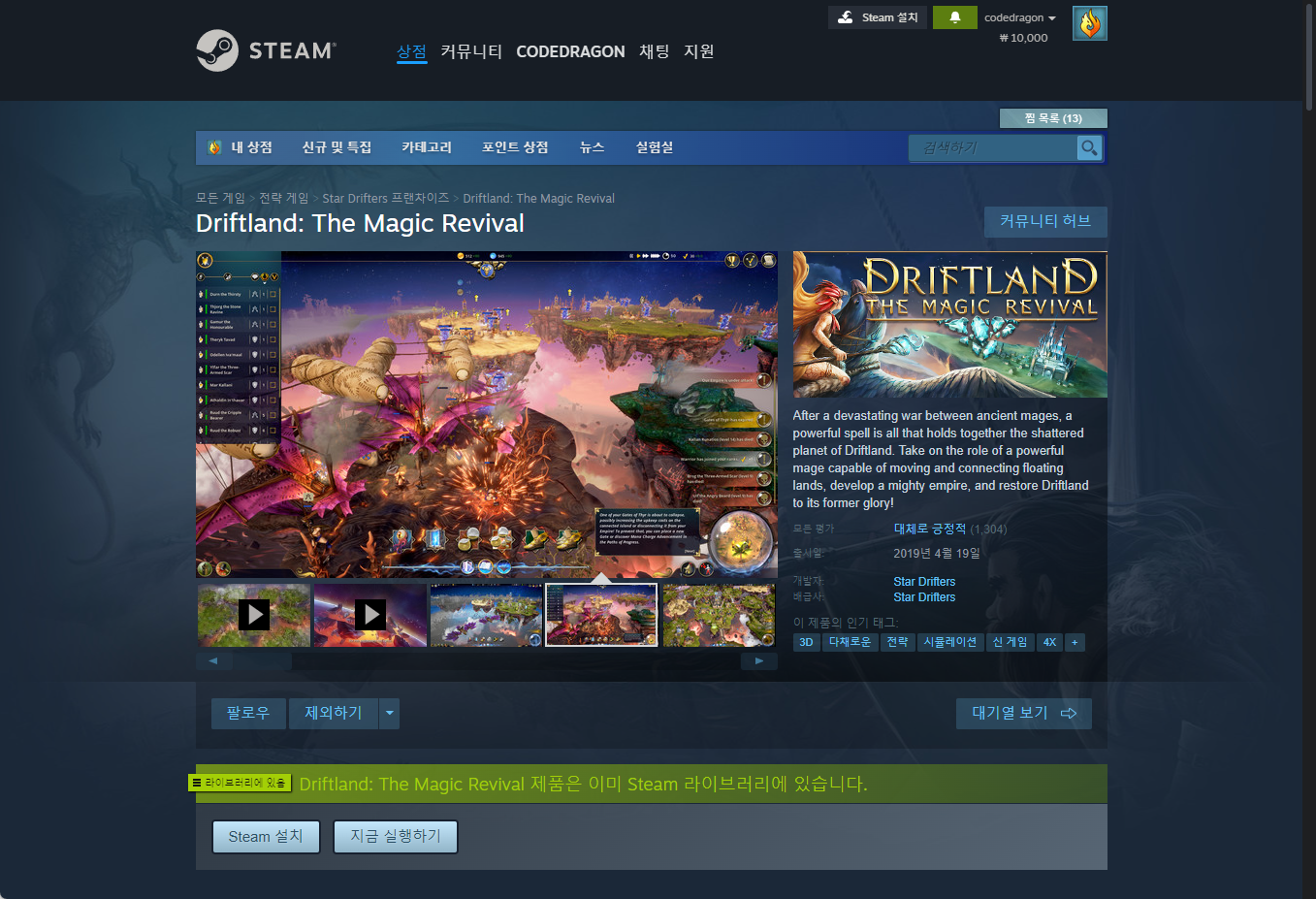 - "Driftland: The Magic Revival" 나의 스팀 게임 라이브러리 확인