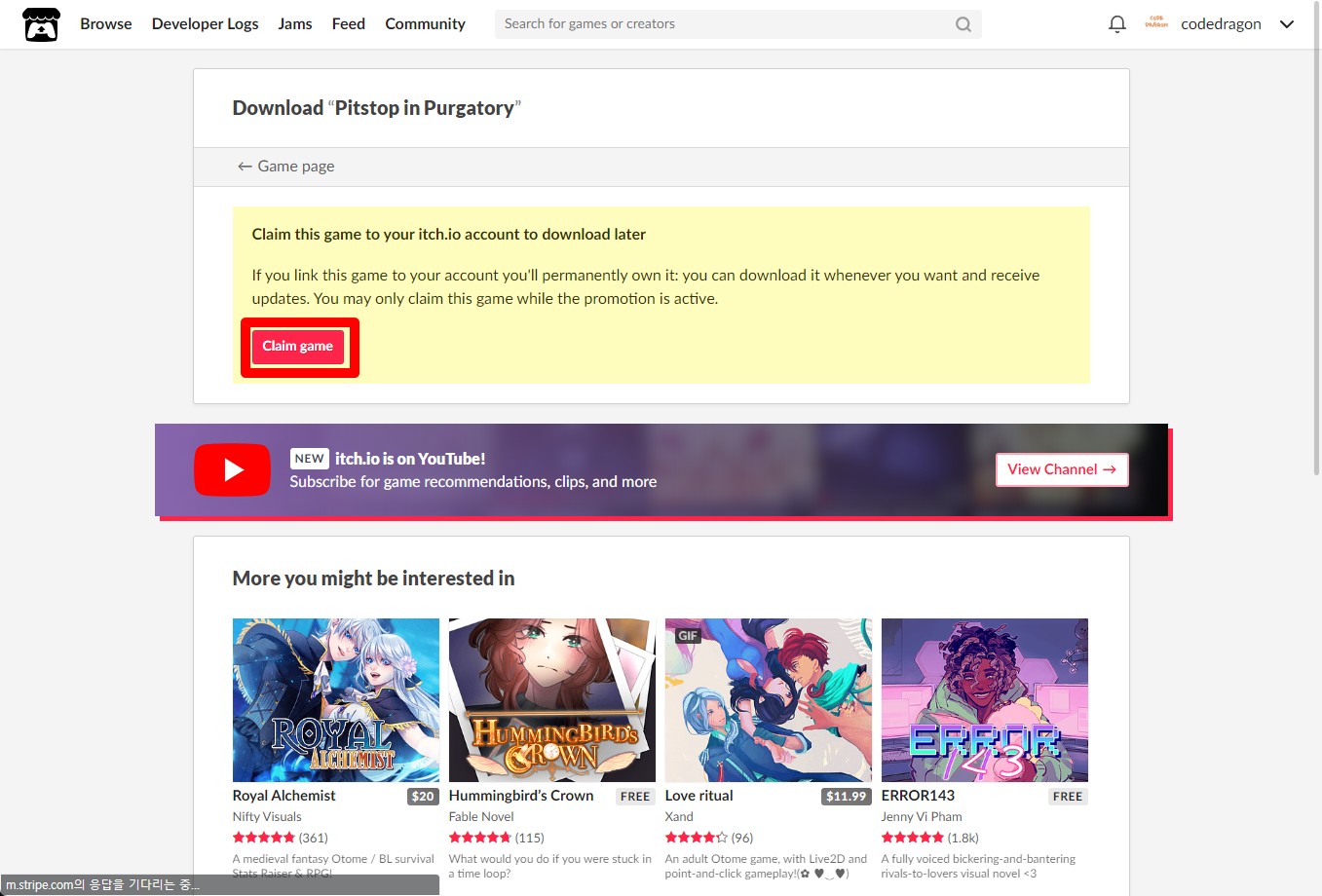 itch.io 잇치 닷 아이오 계정이 없다면 이전 영상 확인하시기 바랍니다.