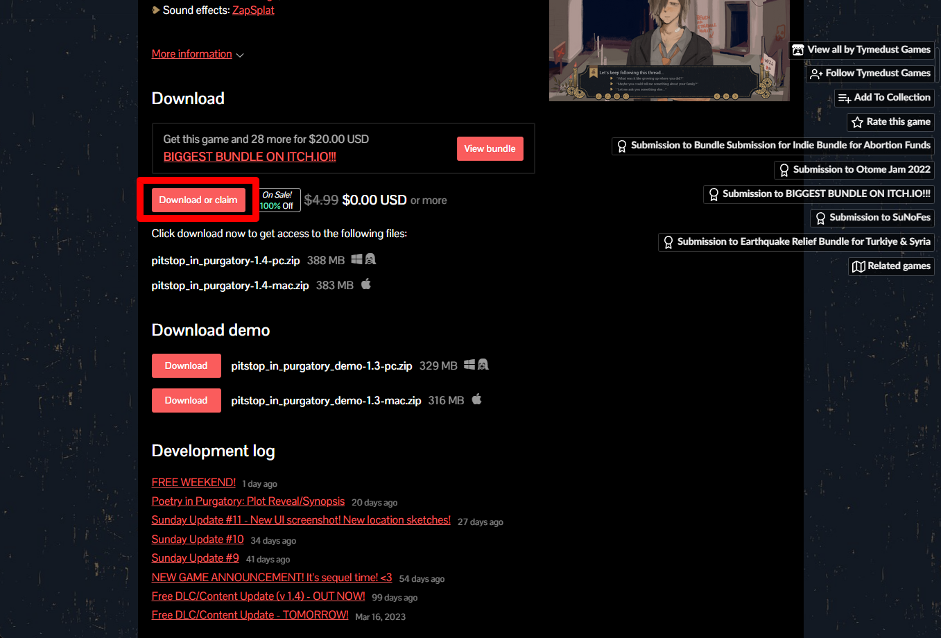 "Pitstop in Purgatory" 페이지를 조금 내려 [Download or claim]을 클릭합니다.