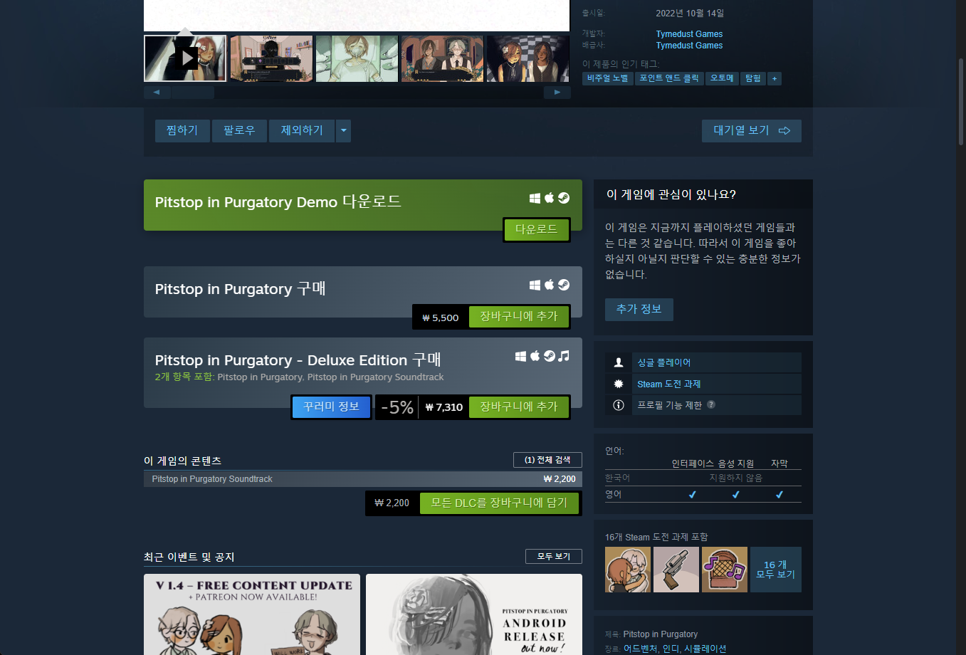 - "Pitstop in Purgatory" 스팀 Steam 페이지