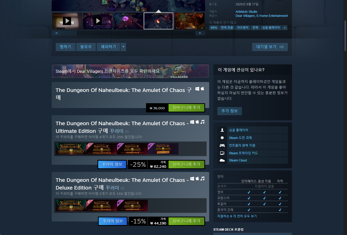 - "The Dungeon Of Naheulbeuk: The Amulet Of Chaos" 게임 보유 확인