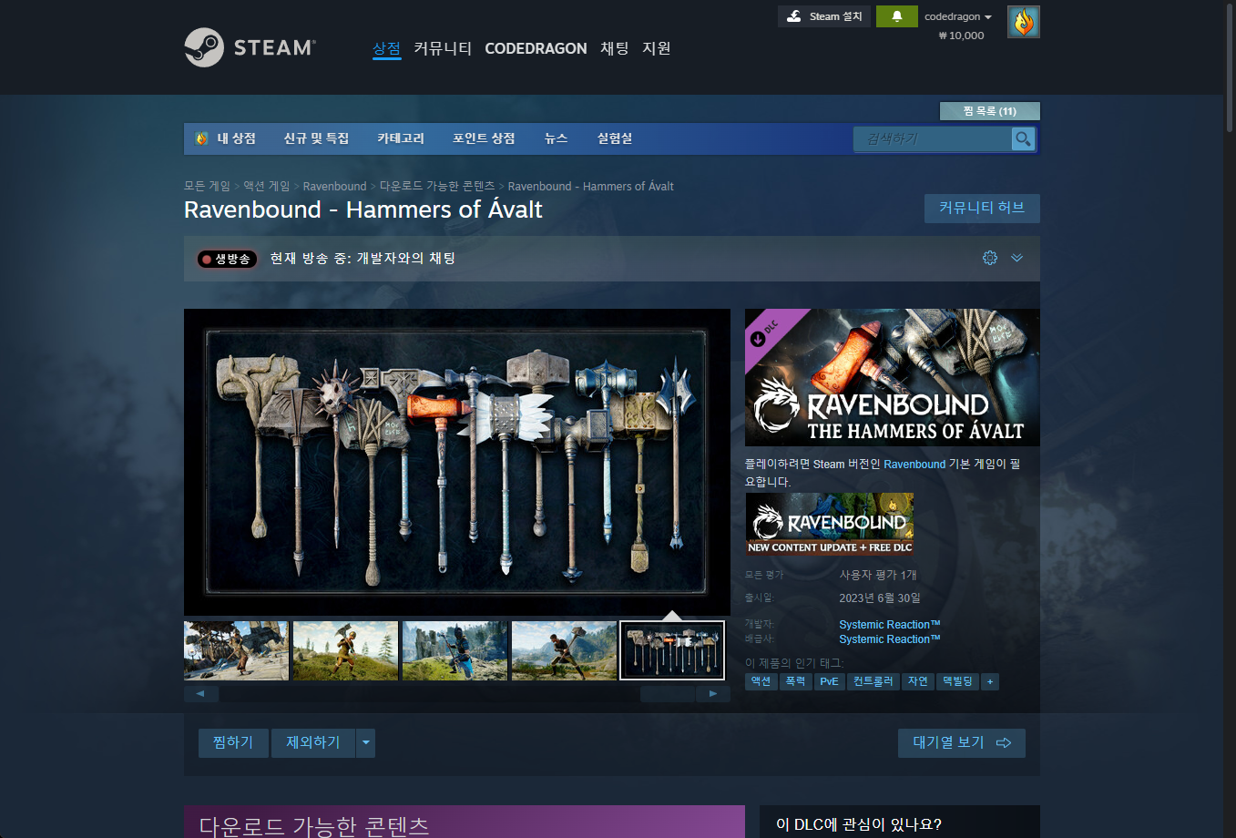 "Ravenbound - Hammers of Ávalt" DLC 게임페이지에 접속합니다.