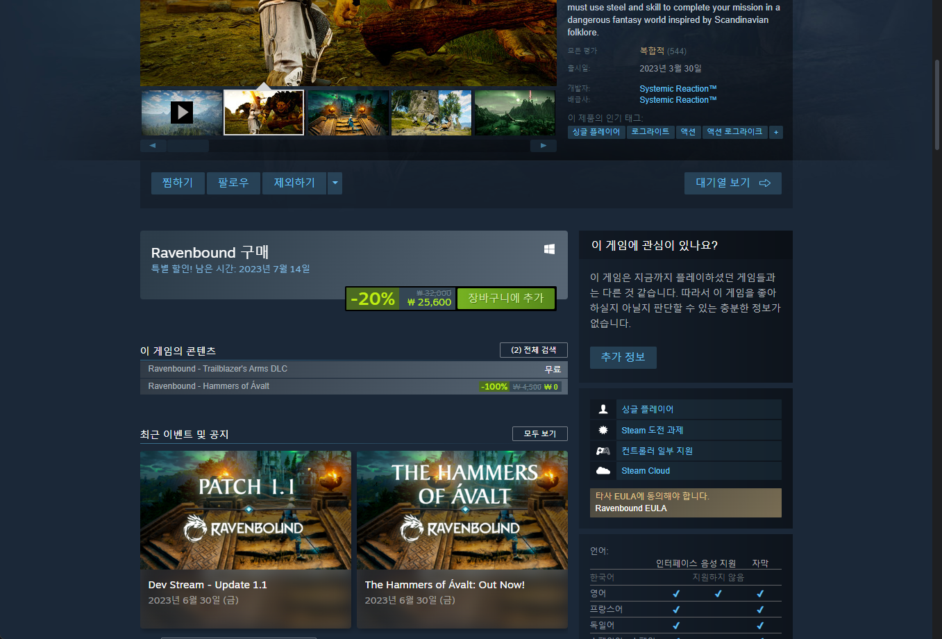 - "Ravenbound - Hammers of Ávalt" DLC 게임 페이지 (DLC)