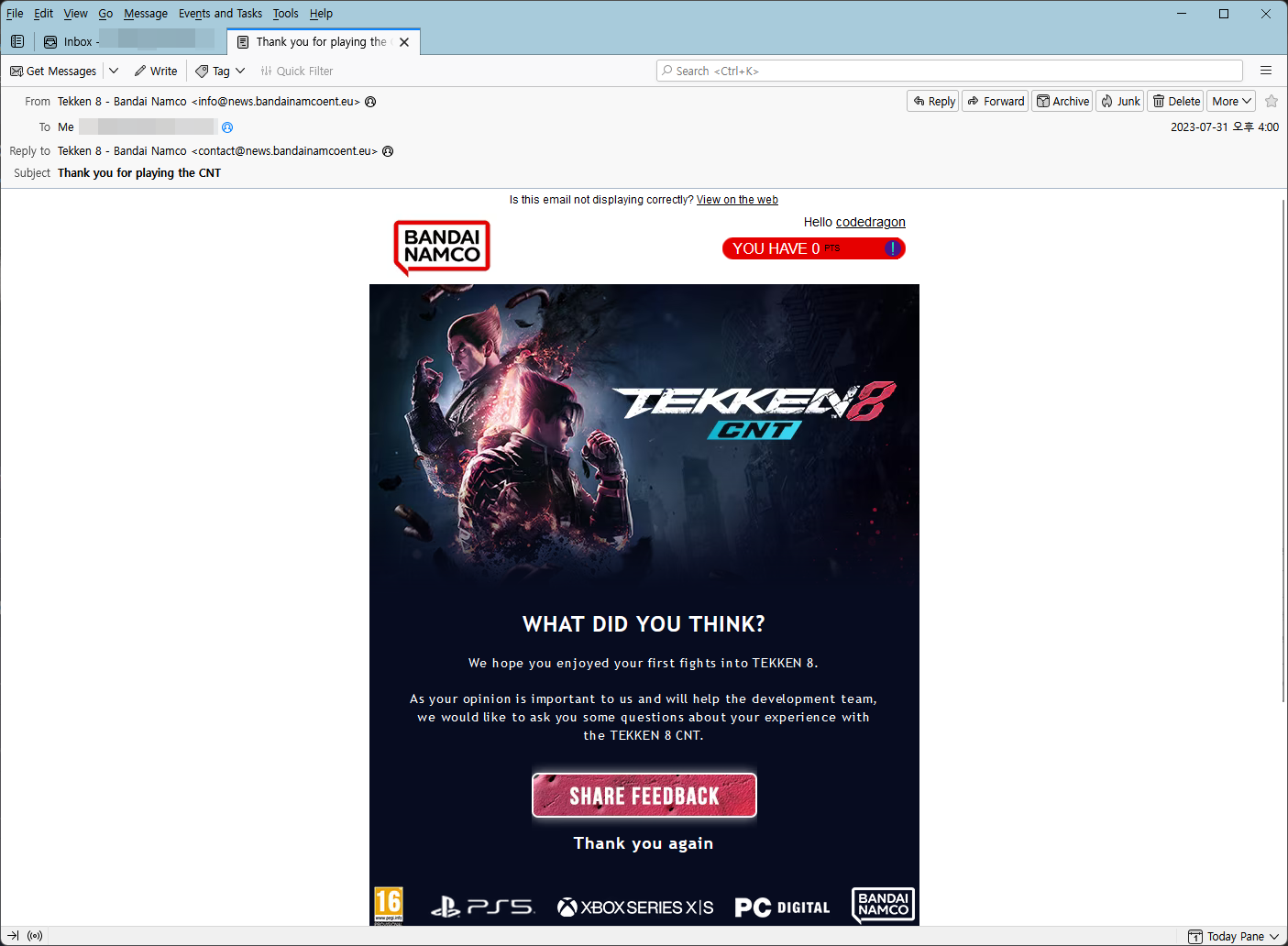 - 철권 8 CNT 참여 확정 메일 확인하기