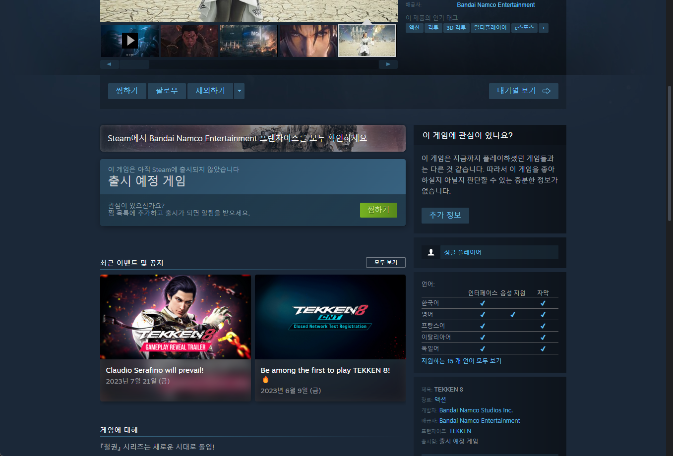 TEKKEN 8 철권 8 - Steam 스팀 페이지