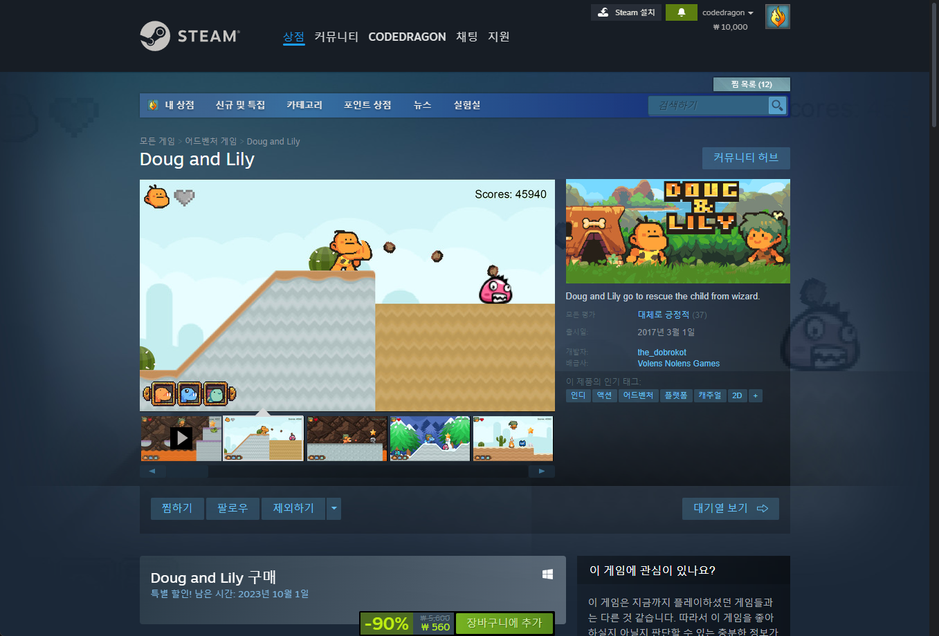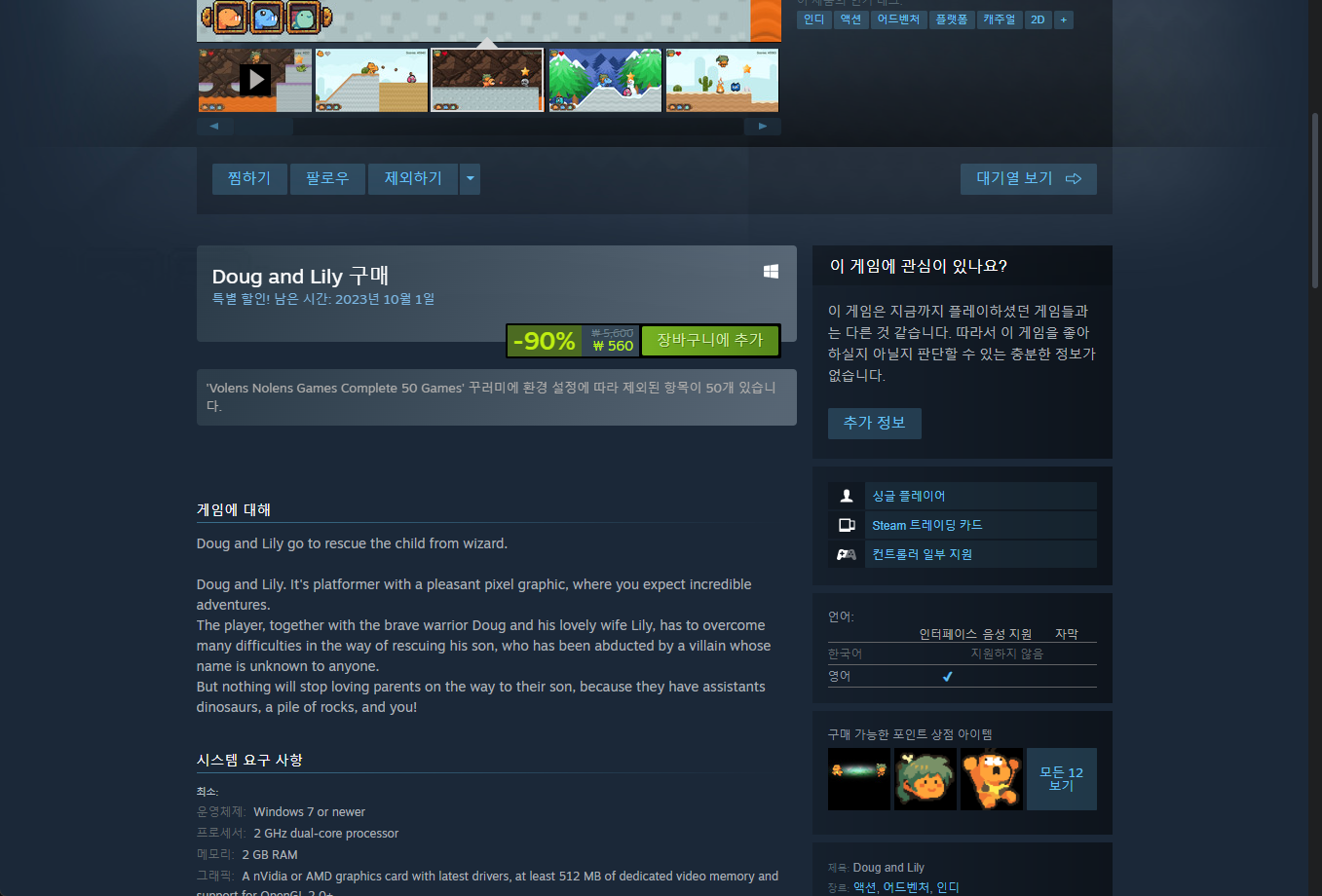 "Doug and Lily" 게임 스팀 페이지입니다.