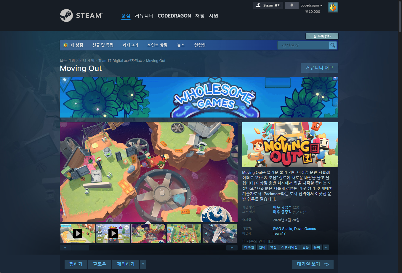 오늘은 스팀에서 무료로 받을 수 있는 "액션" 게임으로 "Moving Out - Movers in Paradise"을 소개해 드리겠습니다.