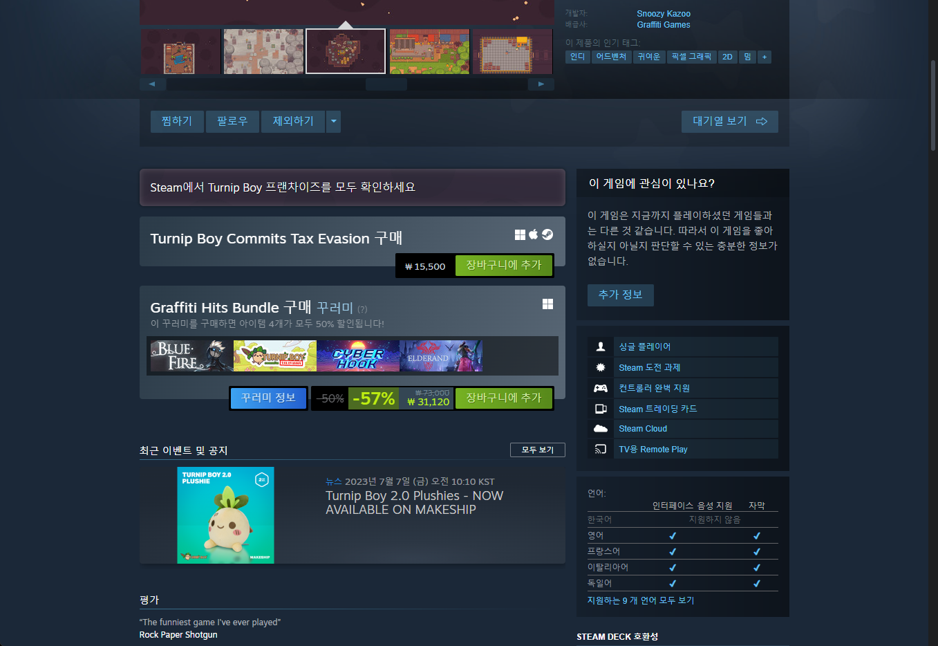 - "Turnip Boy Commits Tax Evasion" 게임 보유 확인