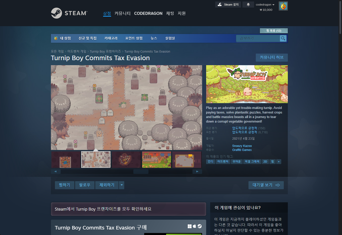- "Turnip Boy Commits Tax Evasion" - Steam 스팀 게임 페이지