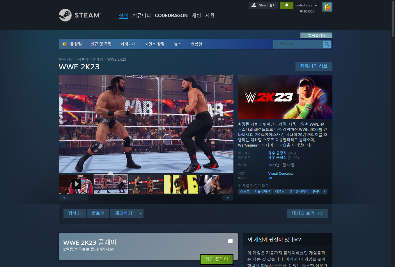 "WWE 2K23" 게임페이지에 접속합니다.
