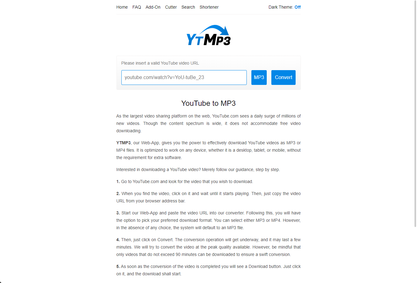 현재 보고 있는 영상의 URL을 붙여넣기 하면 MP3 파일로 변환할 수 있으며 다운받아 활용할 수 있습니다.