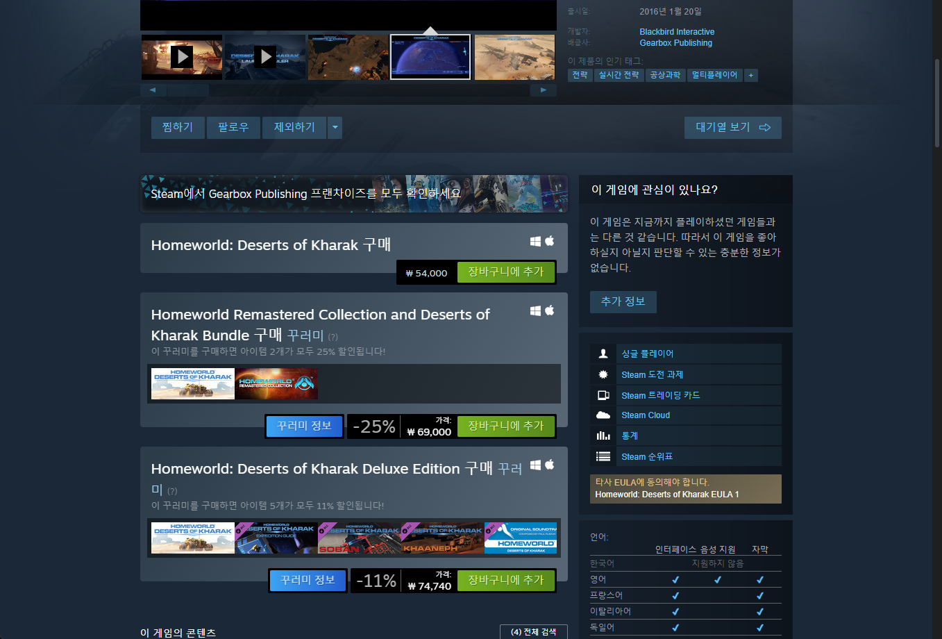 - "Homeworld: Deserts of Kharak" 게임 보유 확인