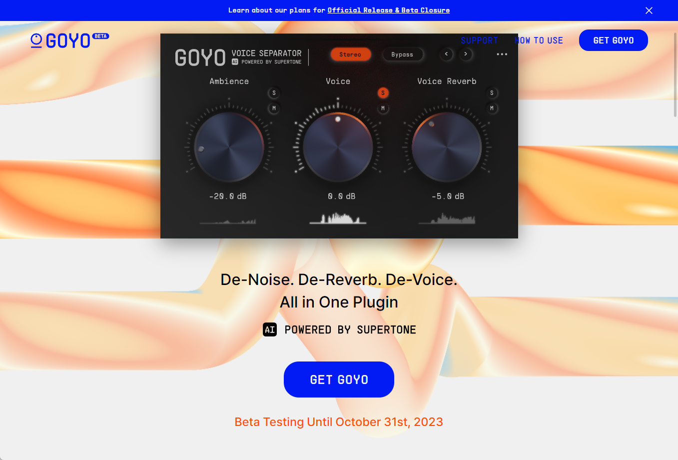 GOYO 고요 오디오 플러그인 다운받기 download - 잡음/보이스/노이즈/음성/반향 제거 Voice Separator (Ambience, Voice, Voice Reverb)