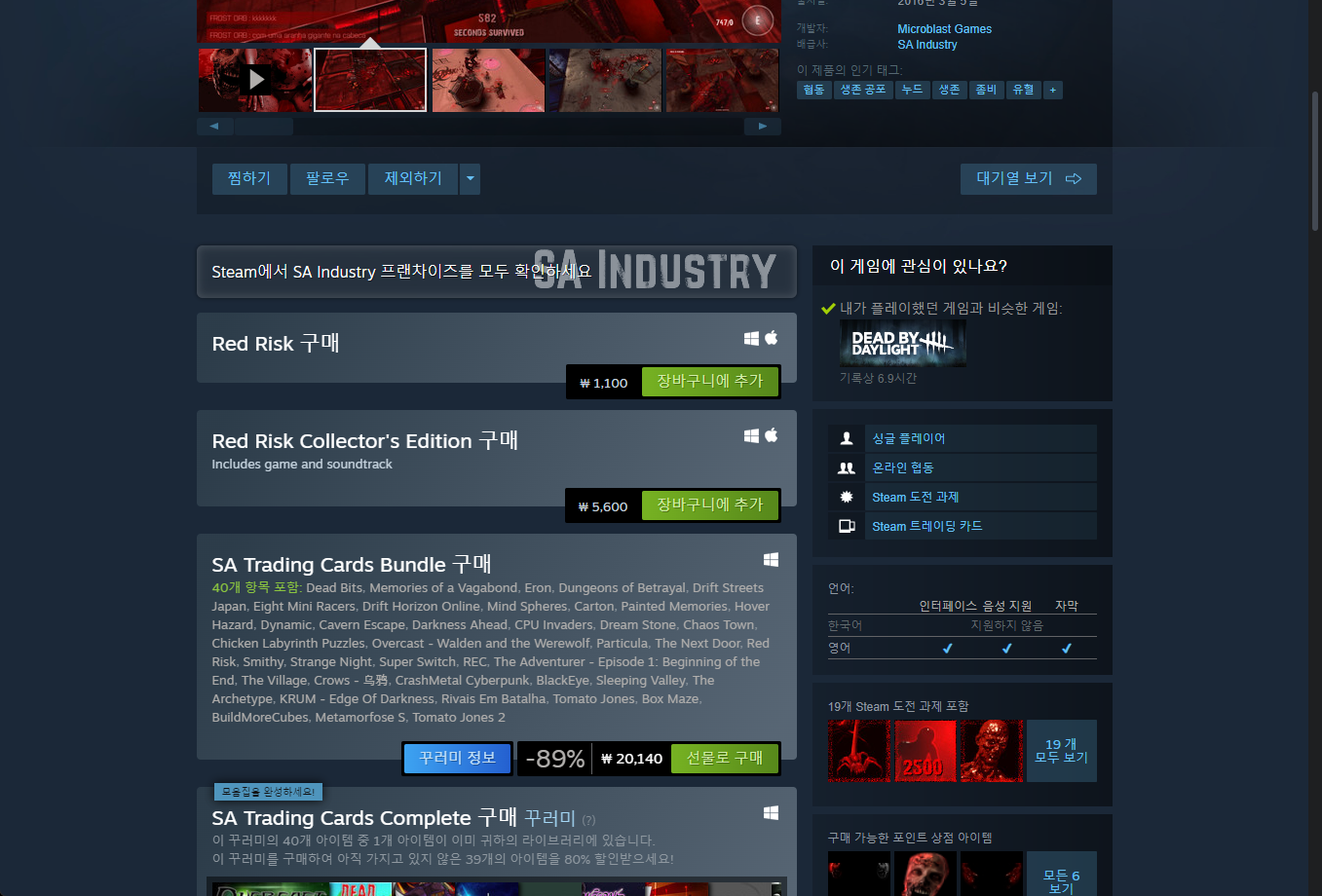 나의 계정의 라이브러리 안에서 "Red Risk" 게임 가지고 있는 것 확인할 수 있으며 설치파일도 다운받을 수 있습니다.