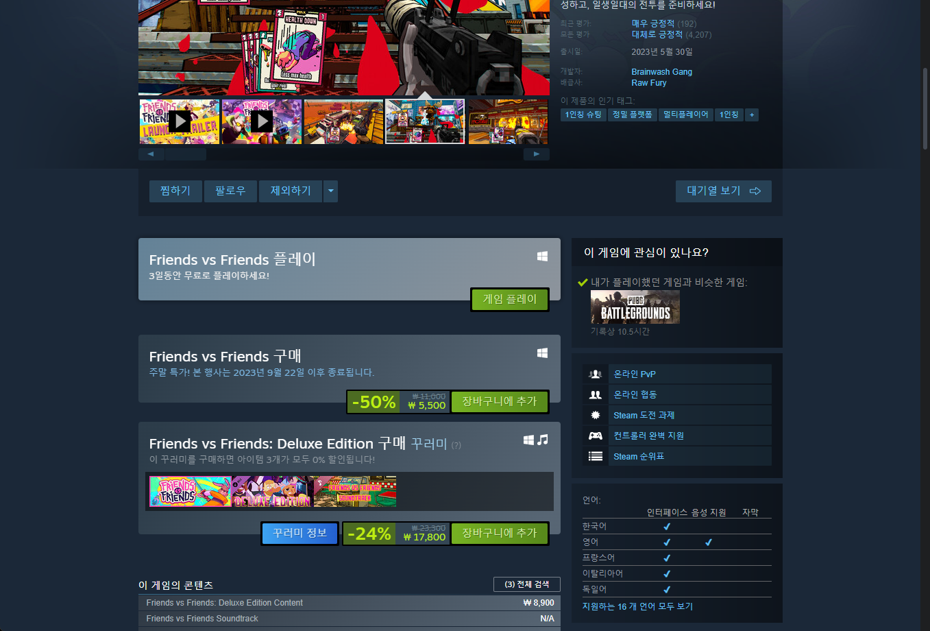 "Friends vs Friends" Steam 스팀 게임 페이지