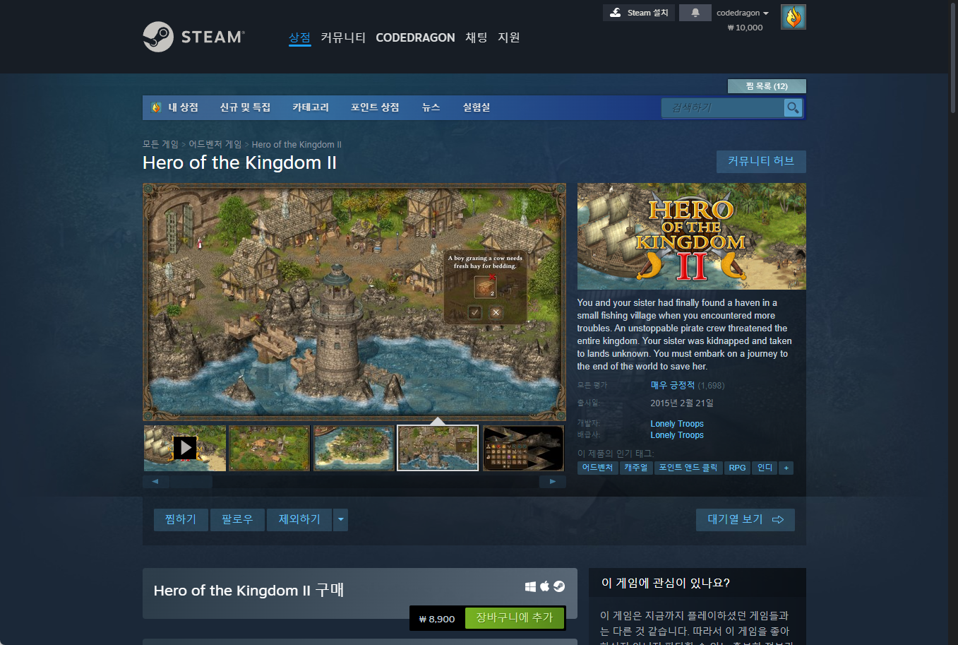 - "Hero of the Kingdom II" - Steam 스팀 페이지