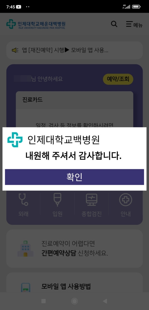- "인제대학교 백병원" 앱 실행